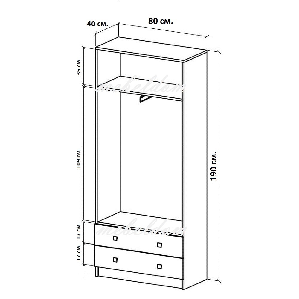 размери: 80 / 40 / височина 190см. (виж схемата)