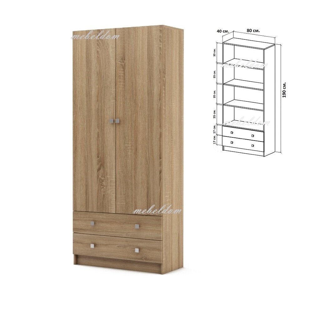 Гардероб двукрилен с 3 рафта и 2 чекмеджета(код-4626) - цена 335лв / 171.28€