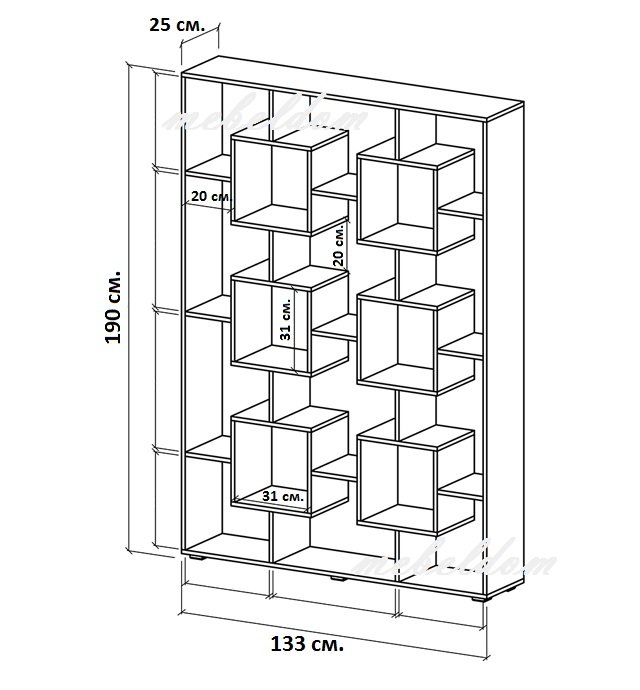 размери: 35 / 25 / височина 190см. (виж схемата)